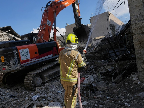 Πλάνα έδειχναν μέλη της πολιτικής άμυνας ανάμεσα στα ερείπια, με βιβλία στην εβραϊκή γλώσσα σκορπισμένα στο έδαφος.