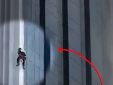 Την ώρα που ξεκίνησε ο σεισμός και το νερό άρχισε να πέφτει σαν καταράκτης από πάνω του - με κίνδυνο να τον παρασύρει - ο καθαριστής τζαμιών προσπάθησε να πάει στο πλαϊνό τμήμα του ουρανοξύστη και λίγο αργότερα αρχίζει να χαλαρώνει το σχοινί για να κατέβει στο έδαφος.