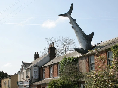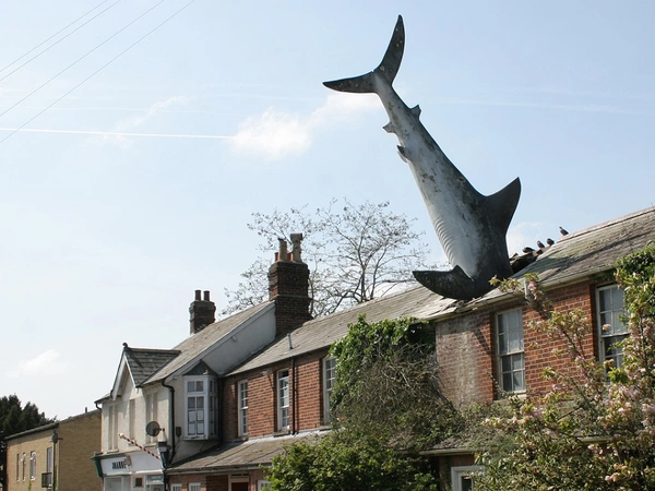 Οι ιδιοκτήτες όμως αυτού του σπιτιού στην Οξφόρδη της Βρετανίας έχουν μείνει με έναν ολόκληρο λευκό καρχαρία, σφηνωμένο με το κεφάλι, στη σκεπή τους. Μπορεί να αποτελεί ψεύτικο ομοίωμα, αλλά σίγουρα όποιος περνά από εκεί πρώτη φορά κοντοστέκεται μπροστά στο θέαμα που μοιράστηκε και η Daily Mail.