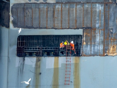 Εικόνες που μεταδίδουν βρετανικά τηλεοπτικά δίκτυα εμφανίζουν τεράστια σύννεφα καπνού και φλόγες να υψώνονται από το σημείο της σύγκρουσης. Τα δύο πλοία μόλις που διακρίνονται μέσα στο τοπίο.