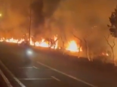Βίντεο που δημοσιεύεται στο X δείχνει οδηγούς να κινούνταν επί του δρόμου, την ώρα που στο πλάι του καίει η φωτιά.