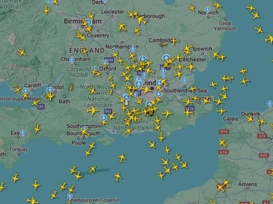 Ο ιστότοπος καταγραφής πτήσεων, FlightRadar24, καταγράφει την εικόνα πάνω από το Χίθροου (Heathrow), μία ιδιαίτερα σπάνια για τα διεθνή δεδομένα, καθώς όλα τα αεροπλάνα περιφέρονται γύρω απ' αυτό και προσπαθούν να προσγειωθούν αλλού.
