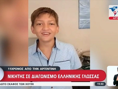Ο 11χρονος από την Αργεντινή δεν έχει έρθει ποτέ στην Ελλάδα και κατάφερε να κερδίσει το πρώτο βραβείο στον Διαγωνισμό Ετυμολογίας, Επιρροής και Συμβολής της Ελληνικής Γλώσσας στις γλώσσες του κόσμου, που οργάνωσε η Ελληνική Πολιτιστική Οργάνωση Νόστος της Αργεντινής.