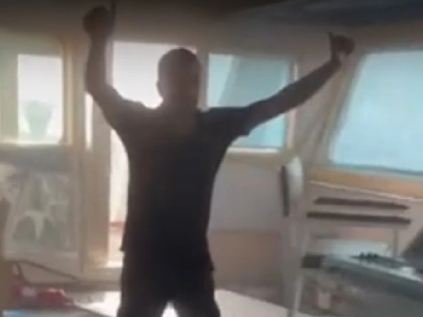 Στο βίντεο διακρίνονται το πλήρωμα και οι ένοπλοι φρουροί στη γέφυρα σε κατάσταση πανικού.