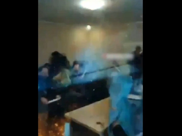 Έπειτα από μια σύντομη συνομιλία, σε τεταμένο κλίμα όπως φαίνεται στα πλάνα, ο αξιωματούχος βγάζει από τις τσέπες του και πετά στο πάτωμα αντικείμενα που μοιάζουν με χειροβομβίδες. Ακολουθεί σειρά εκρήξεων, καπνός υψώνεται και ακούγονται άνθρωποι να φωνάζουν πανικόβλητοι, προτού το βίντεο διακοπεί.