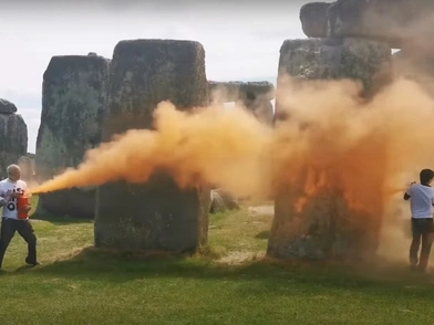 Μέρος του θρυλικού μνημείου Στόουνχεντζ καλύφθηκε από πορτοκαλί μπογιά που έριξαν ακτιβιστές για το κλίμα χθες, Τετάρτη (19/6), με τις αρμόδιες αρχές να ενημερώνουν πως δεν υπέστη μόνιμη φθορά.
