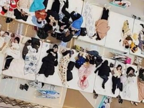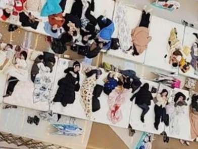 Βίντεο που ήρθε στη δημοσιότητα δείχνει εκατοντάδες διαγωνιζόμενους να «ξεκουράζονται» στα στρώματα που απλώνονταν γύρω από μια κυλιόμενη σκάλα, καθώς τους παρακολουθούσε ο διαιτητής, διασφαλίζοντας ότι δεν παραβίαζαν τους αυστηρούς κανόνες του διαγωνισμού.