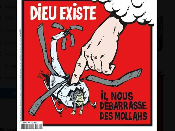 Το εξώφυλλο είναι μια γελοιογραφία που δείχνει το χέρι του Θεού να έχει τρυπήσει με το δάχτυλο το πιλοτήριο και το σώμα του Εμπραχίμ Ραϊσί να προεξέχει από το κατεστραμμένο ελικόπτερο: «Ο Θεός υπάρχει. Μας απαλλάσσει από τους μουλάδες», γράφει. Το περιοδικό θα είναι διαθέσιμο από σήμερα. Ωστόσο, στα social media το εξώφυλλο έγινε αμέσως viral.