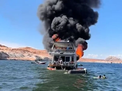 Πάνω από 20 άτομα, ανάμεσά τους και ένα μωράκι δύο μηνών και τέσσερα ανήλικα παιδιά, αναγκάστηκαν να πέσουν στα νερά λίμνης στη Γιούτα, όταν το σκάφος στο οποίο επέβαιναν έπιασε φωτιά κατά τη διάρκεια του ταξιδιού του. Οι κρίσιμες στιγμές καταγράφηκαν σε βίντεο που δείχνει τους 25 επιβάτες να ρίχνουν φουσκωτά στη λίμνη, ενώ κάποιος φωνάζει: «Πηδήξτε! Πηδήξτε!» και «Πάρτε το μωρό».
