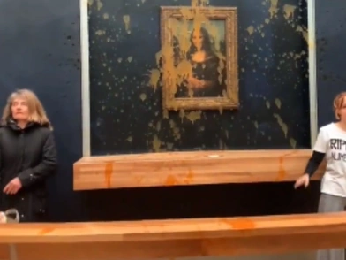 Διαδηλωτές πέταξαν σούπα στον πίνακα της Μόνα Λίζα του Λεονάρντο ντα Βίντσι, η οποία εκτίθεται στο Λούβρο στο Παρίσι.