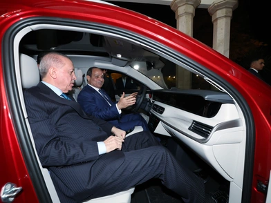 Ο Ερντογάν συνέχισε την ημέρα του οδηγώντας το Togg προς το ξενοδοχείο όπου φιλοξένησε την καταληκτική συνεδρίαση του Τουρκο-Αιγυπτιακού Επιχειρηματικού Φόρουμ, πάντα υπό το βλέμμα του Σίσι.