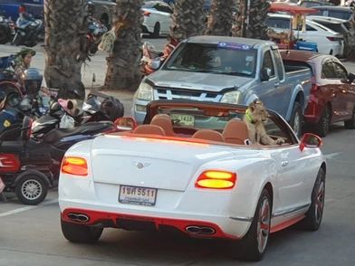 Ένα βίντεο, που έχει γίνει πλέον viral, δείχνει το αλυσοδεμένο λιονταράκι να κάθεται στο πίσω μέρος μιας λευκής, κάμπριο Bentley.