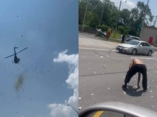 Πανικός προκλήθηκε στους δρόμους του Ντιτρόιτ, όταν ελικόπτερο πετούσε χαρτονομίσματα, με αποτέλεσμα οι οδηγοί να βγουν από τα αυτοκίνητά τους και να μαζεύουν λεφτά από τον δρόμο.