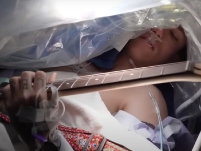 Ένα βίντεο που έκανε πρόσφατα τον γύρο του διαδικτύου δείχνει έναν μουσικό να παίζει την ηλεκτρική κιθάρα του στη διάρκεια επέμβασης για την απομάκρυνση του εγκεφαλικού του καρκίνου, με τους γιατρούς να τον χειρουργούν όσο είναι ξύπνιος.