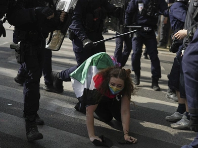 Στη Ναντ καταγράφηκαν εντάσεις και οι αστυνομικοί χρησιμοποίησαν υδραντλίες.