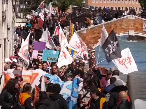 Σύμφωνα με την Daily Mail, οι διαδηλωτές με πλακάτ και πανό πλημμύρισαν τα ιστορικά κανάλια και τα στενά σοκάκια της ιταλικής πόλης, κόντρα στην άνευ προηγουμένου πρωτοβουλία, που υποτιθέμενα αποσκοπεί στην πάταξη του υπερτουρισμού.