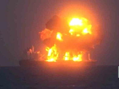 Η δύναμη, που αναπτύχθηκε στην περιοχή από την ΕΕ για την προστασία της διεθνούς ναυσιπλοΐας νωρίτερα φέτος, διευκρίνισε πως παρατηρούνται εστίες φωτιάς σε πέντε σημεία στο κατάστρωμα του πλοίου, το οποίο, σύμφωνα με το υπουργείο Ναυτιλίας της Ελλάδας, μετέφερε στην Κόρινθο 150.000 τόνους αργού πετρελαίου που φόρτωσε στο λιμάνι της Βασόρας του Ιράκ.
