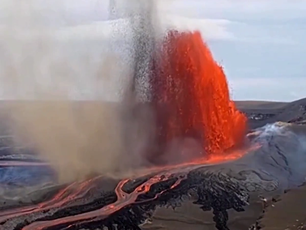 Η εκτόξευση λάβας ξεκίνησε στις 11:10 το πρωί τοπική ώρα (21:10 ώρα Ελλάδας) και καταγράφηκε σε ζωντανή μετάδοση. Οι επιστήμονες εκτιμούν ότι οι πίδακες έφτασαν έως και τα 190 μέτρα, δημιουργώντας ένα εντυπωσιακό φυσικό φαινόμενο.
