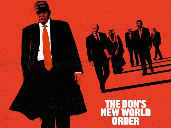 Με τον Ντόναλντ Τραμπ να φοράει το καπέλο του MAGA και έχοντας ως συνοδοιπόρους τον Βλαντίμιρ Πούτιν, τον πιο στενό του σύμμαχο, τον Σι Τζινπίνγκ, τον πιο βασικό του αντίπαλο, τον Ταγίπ Ερντογάν, τον Μοχάμαντ μπιν Σαλμάν και τον Μπενιαμίν Νετανιάχου, ο Economist σε ένα πορτοκαλί φόντο, περιγράφει τη «νέα τάξη πραγμάτων».