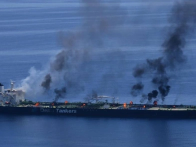 Το υπό ελληνική σημαία δεξαμενόπλοιο MV Sounion, που δέχθηκε επίθεση των ανταρτών Χούθι της Υεμένης στις 21 Αυγούστου στην Ερυθρά Θάλασσα, εξακολουθεί να φλέγεται από την 23η Αυγούστου.