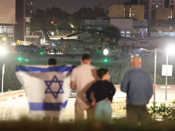Κοντά στο νοσοκομείο Πέταχ Τικβά, σε προάστιο του Τελ Αβίβ, κόσμος επευφημούσε κι ανέμιζε σημαίες του Ισραήλ καθώς πλησίαζαν δυο ελικόπτερα που μετέφεραν ομήρους που απελευθερώθηκαν.