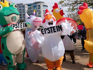Τα φουσκωτά κοστούμια έχουν εξελιχθεί σε μια παράδοξη αλλά διαρκή εικόνα των φετινών διαδηλώσεων κατά της κυβέρνησης Τραμπ. Οι πόλεις αντιδρούν στην καταστολή των απελάσεων και στις στρατιωτικές αναπτύξεις στο εσωτερικό, ενώ οι διαδηλωτές χρησιμοποιούν τις στολές ως ειρωνική απάντηση στους Ρεπουμπλικάνους που χαρακτηρίζουν τις κινητοποιήσεις «μίσους κατά της Αμερικής».