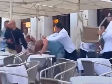 Το βίντεο που δημοσίευσε η NYP καταγράφει έναν από τους σερβιτόρους να επιτίθεται με γροθιές στον πελάτη, σπρώχνοντάς τον με φόρα πάνω σε τραπέζι. Ταυτόχρονα, άλλος ένας από το τουριστικό γκρουπ έχει πάρει στα χέρια μία καρέκλα, την οποία του άρπαξε βίαια ένας από τους σερβιτόρους.
