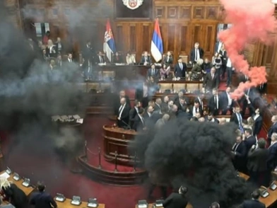 Μέλη της αντιπολίτευσης στη Σερβία πέταξαν καπνογόνα μέσα στην αίθουσα του κοινοβουλίου την Τρίτη (04/03) προκαλώντες σκηνές χάους.