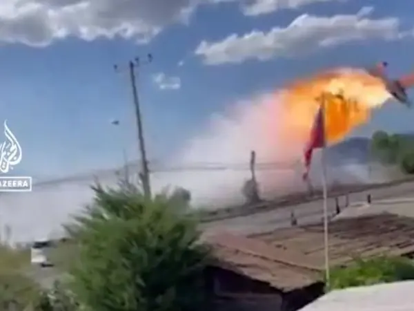 Όπως αναφέρει το Al Jazeera, το μικρό αεροπλάνο χτυπά σε καλώδια και εκρήγνυται προτού συντριβεί στο οδόστρωμα φλεγόμενο.