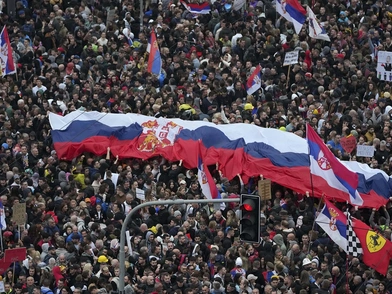 Χιλιάδες διαδηλωτές βρίσκονται έξω από το κτίριο όπου στεγάζεται η κρατική τηλεόραση της Σερβίας στο Βελιγράδι, καθώς ζητούν να ακουστεί το αίτημά τους σχετικά με την απονομή δικαιοσύνης για την τραγωδία του περασμένου Νοεμβρίου, στο Νόβι Σαντ και να μπει τέλος στη διαφθορά.