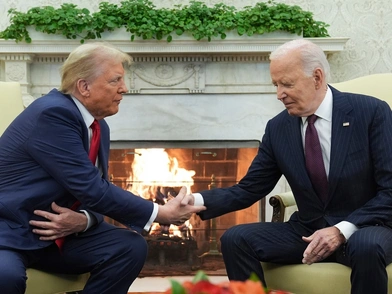 «Η πολιτική είναι σκληρή, και συχνά δεν είναι πολύ ευχάριστη. Αλλά είναι ευχάριστη σήμερα και είμαι ευγνώμων», είπε ο 45ος και σύντομα 47ος Αμερικανός πρόεδρος μετά τη χειραψία του με τον Τζο Μπάιντεν στο Οβάλ Γραφείο.