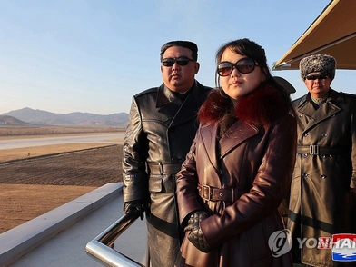 Οι φωτογραφίες που μεταδόθηκαν από τα κρατικά μέσα της Βόρειας Κορέας δείχνουν τον ηγέτη της χώρας και την κόρη του, ντυμένους με μακριά δερμάτινα μπουφάν και γυαλιά ηλίου, να επιβλέπουν τις αεροπορικές ασκήσεις.
