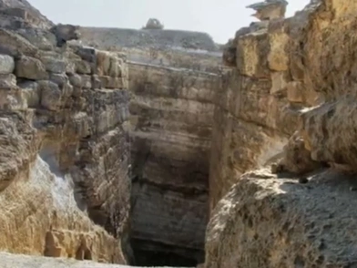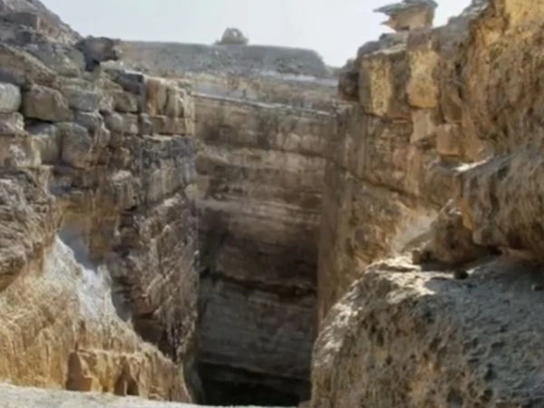 Μια σκάλα λαξευμένη απευθείας στο βράχο οδηγεί σε έναν άξονα που κόβεται στον βράχο και η σκάλα φαίνεται σαν να μην οδηγεί πουθενά.