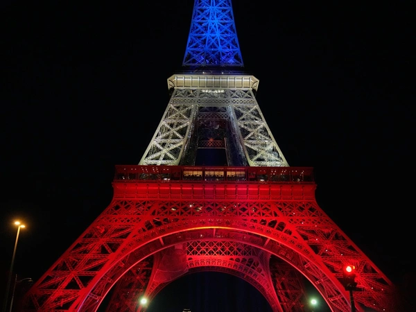 Ο πύργος του Άιφελ φωταγωγήθηκε από χθες στα χρώματα του γαλλικού εθνικού συμβόλου μόλις έπεσε το σκοτάδι και το ίδιο θα γίνει σήμερα, σύμφωνα με τον δήμο.