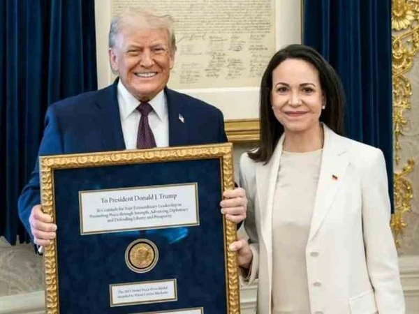 Το Νόμπελ Ειρήνης αποτελούσε διακαή πόθο του Ντόναλντ Τραμπ και η Ματσάδο του το αφιέρωσε όταν της απονεμήθηκε πέρυσι. Ωστόσο η νορβηγική επιτροπή των Νόμπελ κατέστησε σαφές μέσω ανακοίνωσης πως το βραβείο «δεν μπορεί να ανακληθεί, να μοιραστεί ή να μεταβιβαστεί σε άλλους».