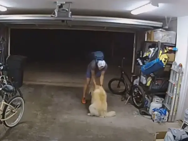 Συγκεκριμένα, στο βίντεο που κατέγραψε η κάμερα ασφαλείας του γκαράζ φαίνεται ο διαρρήκτης να φεύγει με το ποδήλατο, ωστόσο, εκείνη την ώρα κάνει την εμφάνισή του το σκυλάκι της οικογένειας, με αποτέλεσμα να μην μπορεί να του αντισταθεί και να αρχίσει να το χαϊδεύει.