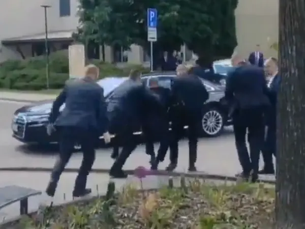 Βίντεο από τη στιγμή που ο πρωθυπουργός της Σλοβακίας, Ρόμπερτ Φίτσο, μεταφέρεται στο αυτοκίνητο αφότου δέχτηκε πυροβολισμούς από άνδρα μετά από συνεδρίαση με υποστηρικτές του σε πόλη έξω από τη Μπρατισλάβα, έρχεται στο φως της δημοσιότητας.