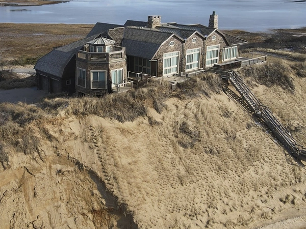 Τα νερά κόλπου στο ακρωτήρι Κοντ της Μασαχουσέτης έχουν αρχίσει να καταλαμβάνουν σταδιακά το οικόπεδο, όπου είναι χτισμένο ένα εντυπωσιακό σπίτι και εικόνες που δημοσίευσε το Associated Press κόβουν την ανάσα.
