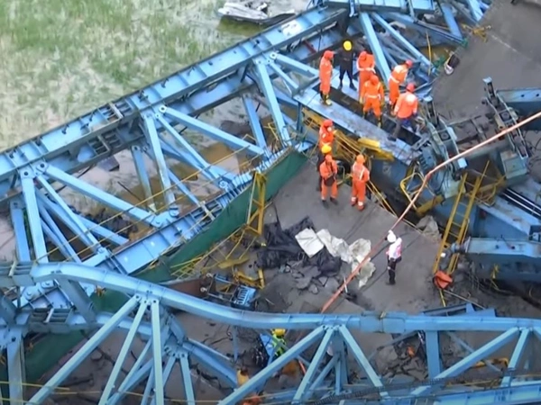 Πλάνα που μετέδωσαν ινδικά τηλεοπτικά δίκτυο εικονίζουν τα συντρίμμια του γερανού στο έδαφος, ανάμεσα σε κολόνες της γέφυρας, κοντά στη Σαχάπουρ, περίπου 80 χιλιόμετρα από την πολιτειακή πρωτεύουσα Μουμπάι.