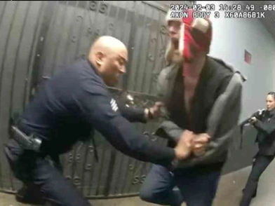 Κράταγε «λευκό αντικείμενο στο δεξί χέρι», σύμφωνα με ανακοίνωση της αστυνομίας. Αν και αρχικά τα μέλη της νόμιζαν πως ήταν «μαχαίρι», κατόπιν αποδείχθηκε «πως ήταν πλαστικό πιρούνι». Το βίντεο εικονίζει την αψιμαχία των αστυνομικών με τον νεαρό στον στενό διάδρομο.
