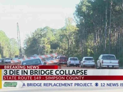 Τουλάχιστον τρεις νεκροί και τέσσερις τραυματίες είναι ο απολογισμός της κατάρρευσης γέφυρας στην κομητεία Σίμπσον της πολιτείας Μισισίπι.