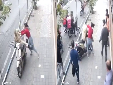 Δεν είναι ξεκάθαρο από την οπτική γωνία του βίντεο αν ο άνδρας την χτύπησε ή της επιτέθηκε, μόνο ότι πέρασε οδηγώντας δίπλα της, απλώνοντας το χέρι του. Η 25χρονη φαίνεται να αντιδρά αρπάζοντάς τον, φωνάζοντάς του, και προσπαθώντας να τον κρατήσει στο σημείο, προσελκύοντας και περαστικούς.