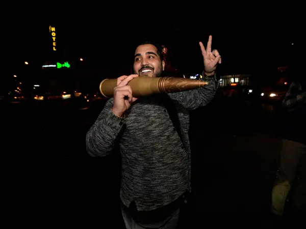 Εκατοντάδες άνθρωποι βγήκαν στους δρόμους για να γιορτάσουν την επίθεση, την ώρα που άλλοι περίμεναν σε μεγάλες ουρές για να προμηθευτούν βενζίνη.