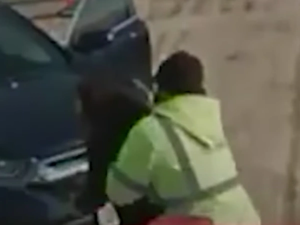 Το βίντεο της κάμερας του οχήματος δείχνει τη γυναίκα να βγαίνει από το ΙΧ της, στο οποίο είχε τα δύο της παιδιά, και να πλησιάζει τον Χάνους, ο οποίος έσπευσε προς βοήθεια.