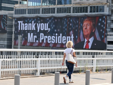 «Thank you, Mr President» είναι η φράση που εμφανίζεται σε μεγάλα διαφημιστικά πλακάτ στην πρωτεύουσα του Ισραήλ.