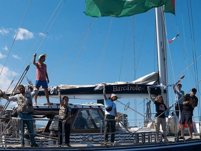 Εκτός από την Τούνμπεργκ, στο υπό βρετανική σημαία ιστιοφόρο σκάφος επιβαίνουν άλλα 11 μέλη πληρώματος, μεταξύ των οποίων η Ρίμα Χασάν, Γαλλοπαλαιστίνια ευρωβουλευτής της Αριστεράς, η οποία δήλωσε στο Γαλλικό Πρακτορείο "Θα παραμείνουμε σε κινητοποίηση μέχρι το τελευταίο λεπτό -- μέχρι το Ισραήλ να διακόψει το ίντερνετ και τα δίκτυα".