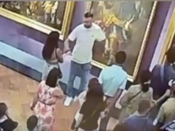 Στο ευρέως διαδεδομένο υλικό από κάμερα ασφαλείας του περιστατικού, φαίνεται ένας άνδρας να ποζάρει μπροστά από τον ελαιογραφικό πίνακα, προτού γείρει προς τα πίσω και στη συνέχεια να πηδάει γρήγορα πάνω καθώς συνειδητοποιεί ότι τον άγγιξε.