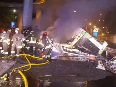 Το λεωφορείο των υπεραστικών συγκοινωνιών της περιφέρειας Βένετο έπεσε πάνω σε ηλεκτρικά καλώδια σιδηροτροχιάς, που βρίσκεται κάτω από την οδογέφυρα.