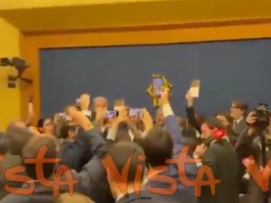 Περίπου μία ώρα πριν από την έναρξη της εκδήλωσης, βουλευτές της αντιπολίτευσης από το Δημοκρατικό Κόμμα, το Κίνημα των Πέντε Αστέρων και το Ιταλικό Σοσιαλιστικό Κόμμα (Avs) μπήκαν στην αίθουσα Τύπου του Montecitorio με αντίγραφα του Συντάγματος.