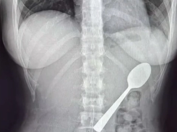 Στη συνέχεια η γυναίκα κατέβαλε μάταιες προσπάθειες να απομακρύνει το κουτάλι από την άνω πεπτική οδό της. Προκειμένου να μην πνιγεί, αναγκάστηκε να καταπιεί το αντικείμενο των 17 εκατοστών.